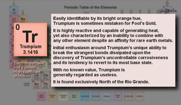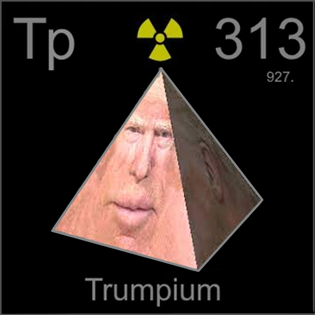 Trumpium is also triangular but is found in the United Flops of America and is found in the crust of the earth more, while Bidenium is found mostly in the mantle.